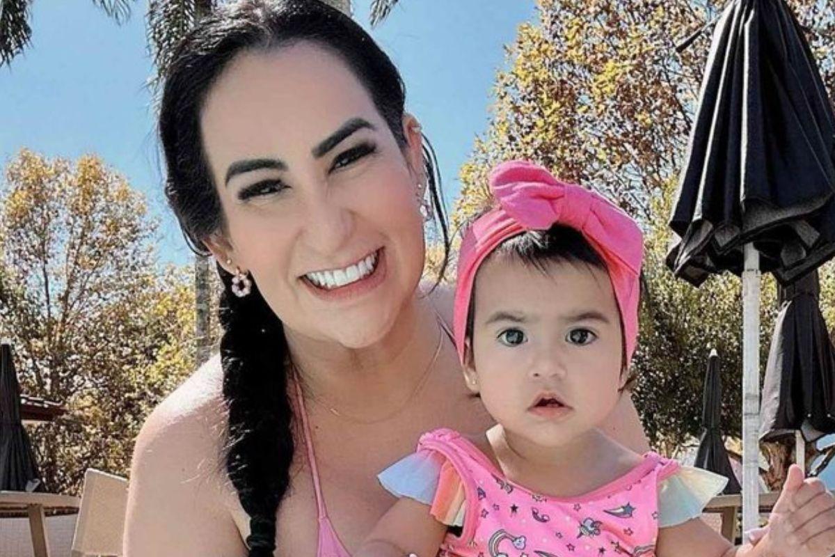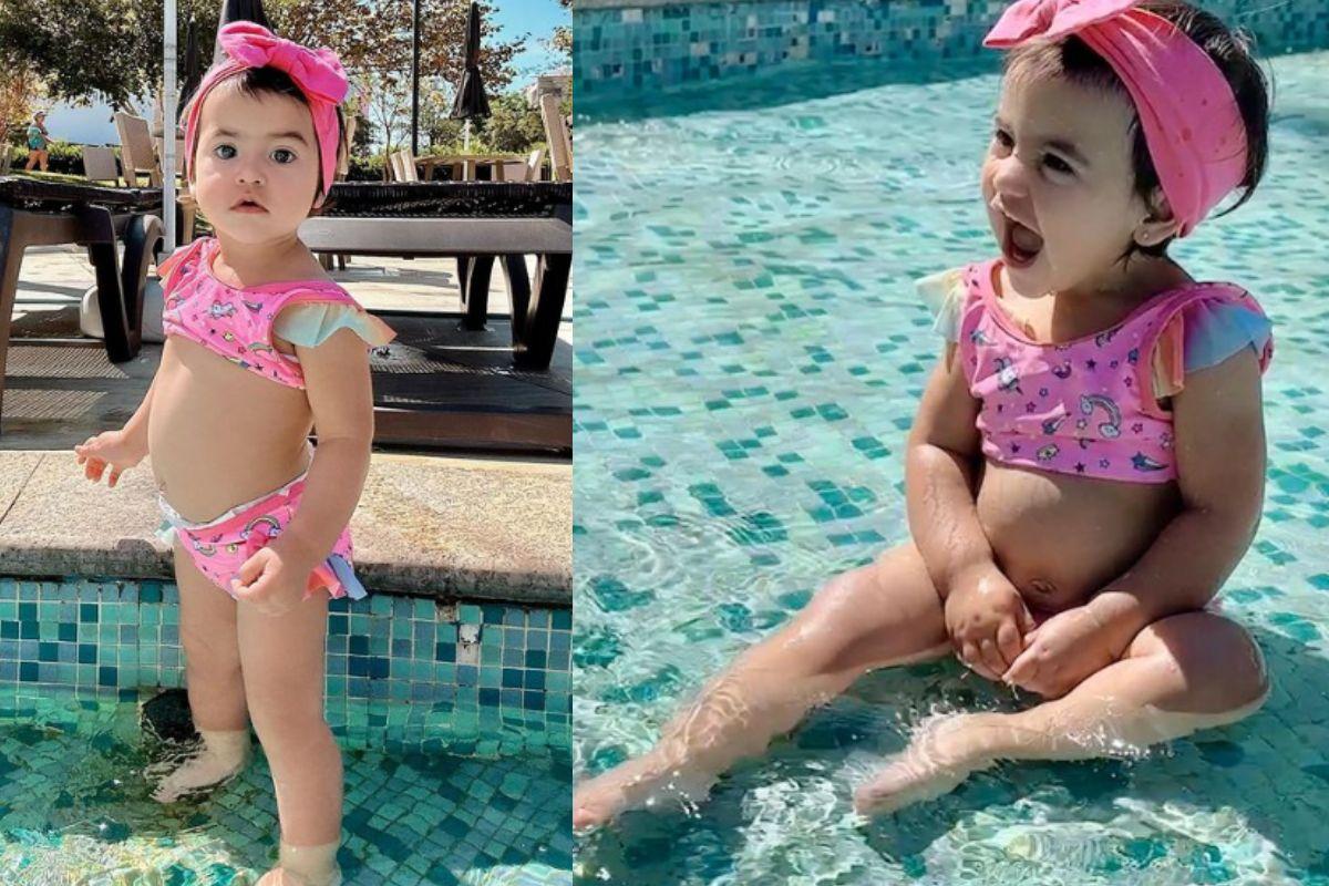 Nos novos registros mãe e filha aparecem aproveitando um dia de sol, usando roupas de banho em tons de rosa combinando. A bebê também surge sorridente com o pai, enquanto da um mergulho na piscina.”Folgas aproveitadas com sucesso!#family #positivevibes #momlife”, escreveu Fabiola ao publicar o momento especial na rede social.
