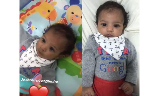Depois o próprio cantor ficou com o menino e postou mais um vídeo dele já falando: “Pai” e mostrou que o bebê já está recuperado e bem animado. Miguel já chamou a atenção de todos nas redes sociais por ter dois meses e já falar algumas palavras.