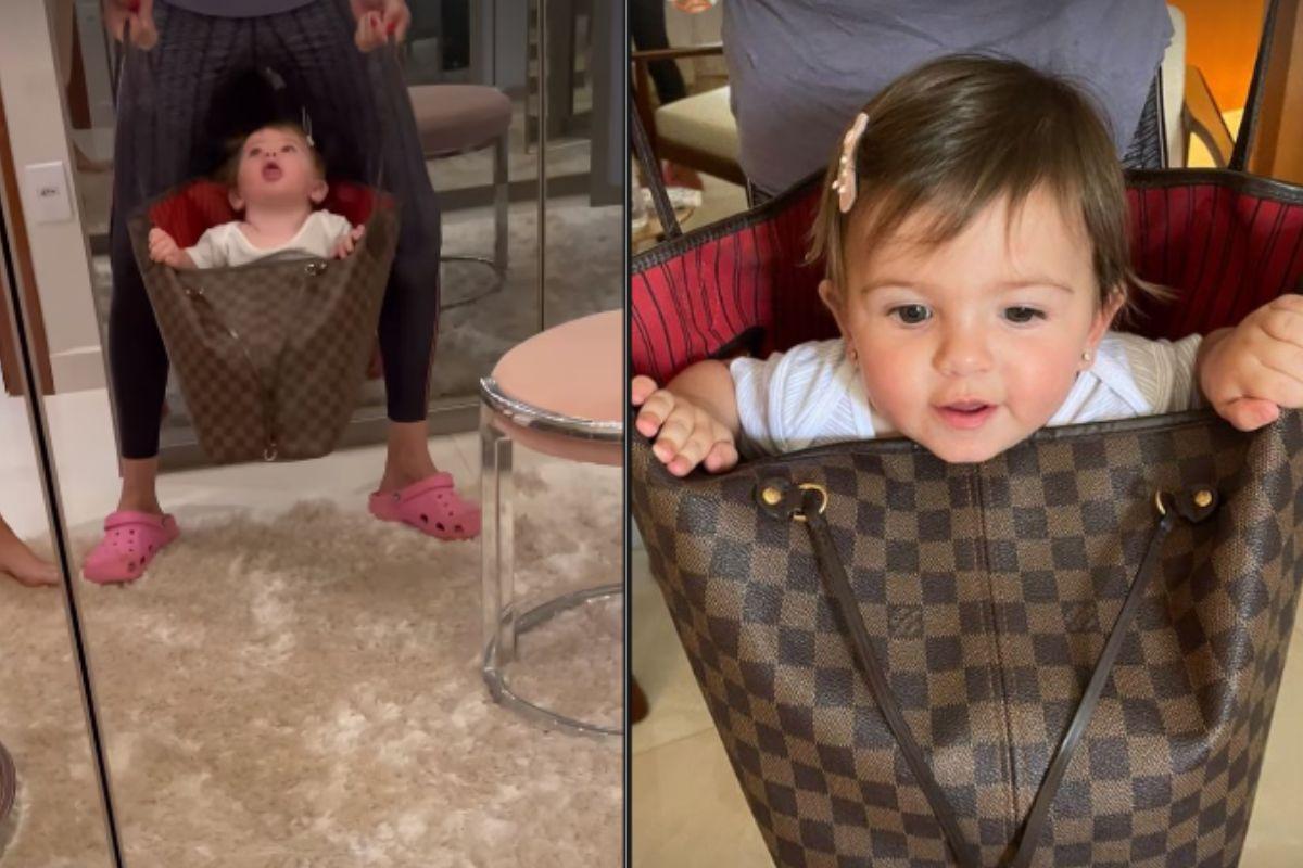 Em um vídeo compartilhado nos Stories do Instagram ela fica se balançando dentro da bolsa e chega a morder o objeto de luxo. A bebê é fruto do relacionamento dela com o empresário Gustavo Theodoro.