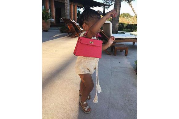 O presente foi dado pela tia, irmã de Kylie, Kourtney Kardashian. E ao postar a filha andando com o acessório ela disse: “Ela não solta a bolsa por nada.” Stormi, que é filha de Kylie com o cantor de rap Trevis Scott, já nasceu em um ambiente onde o dinheiro não é problema.