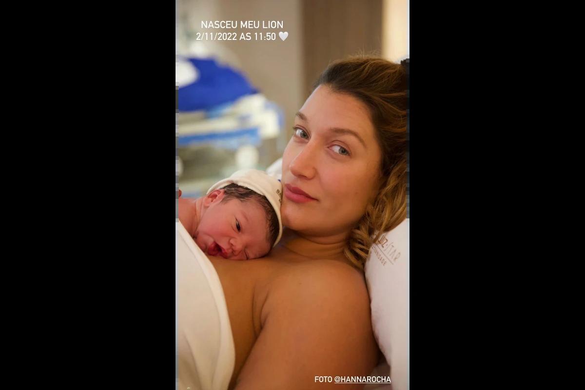 Gabriela, logo após dar à luz já atualizou os seguidores sobre o nascimento do filho. Na foto, a influenciadora aparece segurando Lion e com o sorriso no rosto esbanja felicidade!