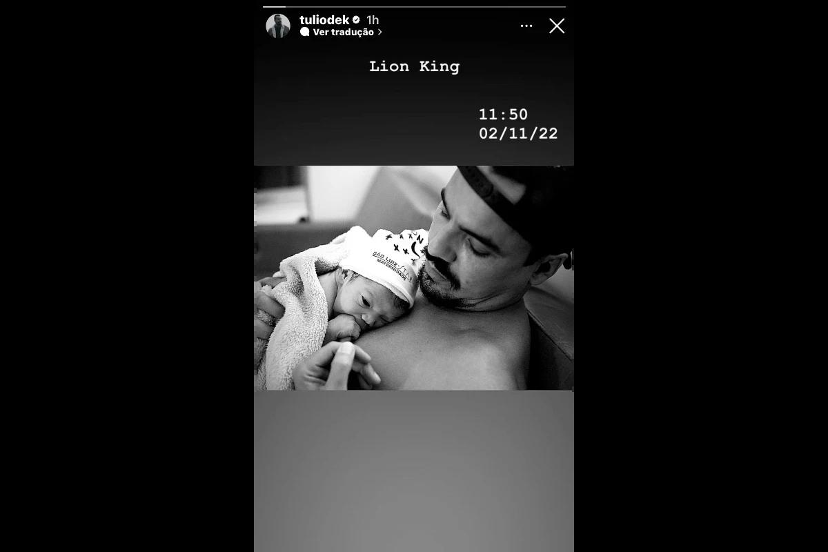 Tulio Dek postou em seus stories uma foto com o recém-nascido (Foto: Reprodução/Instagram)