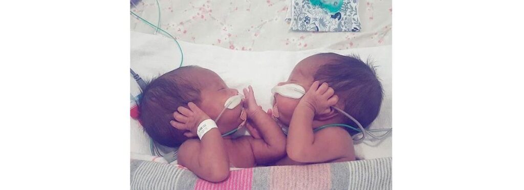 Zoe e Olivia nasceram após 29 semanas de gestação. Por nascerem prematuras, os médicos colocaram as duas em incubadores diferentes, por medo de uma sufocar a outra.