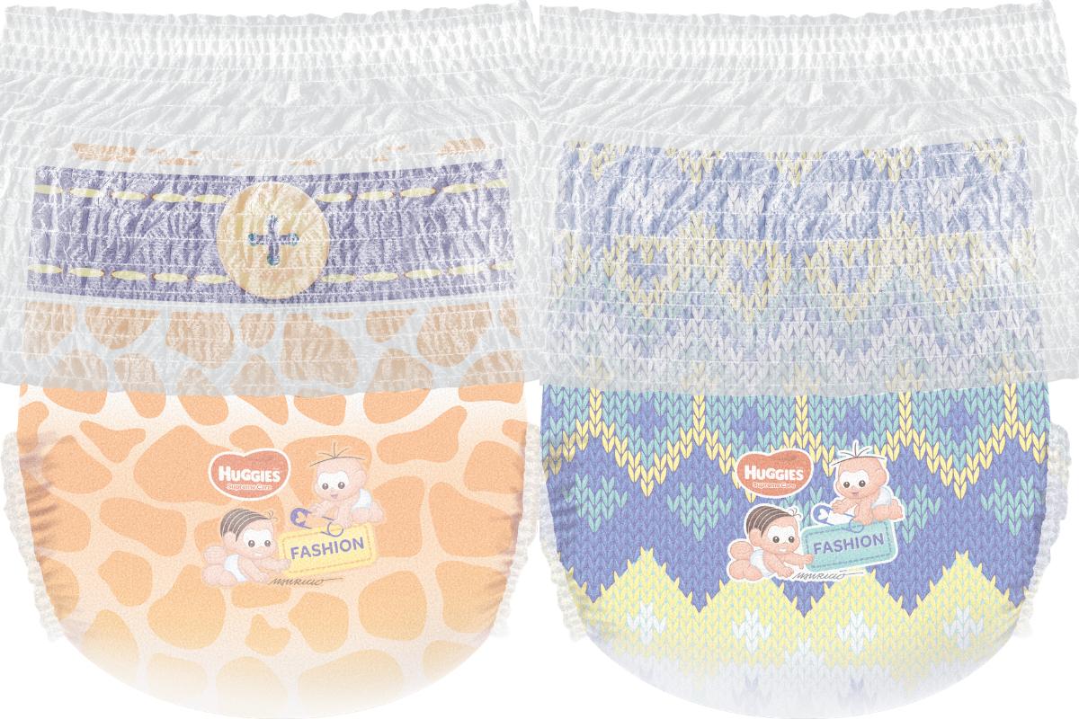 A fralda faz parte da linha Supreme Care e tem quatro opções de estampas: camuflada, jeans, animal print e tricô. A cintura é elástica e possui formato anatômico se adaptando perfeitamente ao corpo do seu filho e oferecendo o dobro de proteção, com barreiras reforçadas capaz de manter os bebês até três vezes mais secos.