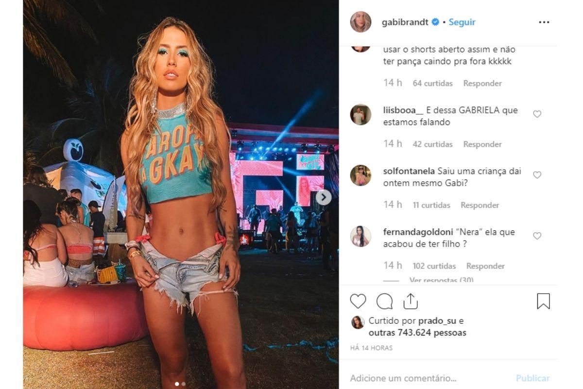 Acontece que ela já estava com um shorts bem curto e com o botão aberto. E toda essa composição da roupa dela fez com que a arriga dela ficasse 100% aparente. Por conta disso, todos os comentários na publicação era sobre o corpo dela.