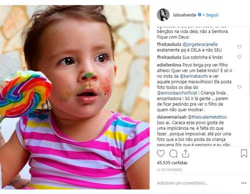 filha de amiga de Isis (Foto: Reproduçã/@isisvalverde)