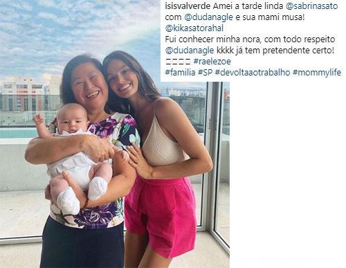 Ela também já apareceu com a filha de Sabrina Sato e brincou sobre um possível namoro entre os bebês no futuro. A única foto de Rael no feed de Isis é dele no berço e não é possível enxergar o rosto.