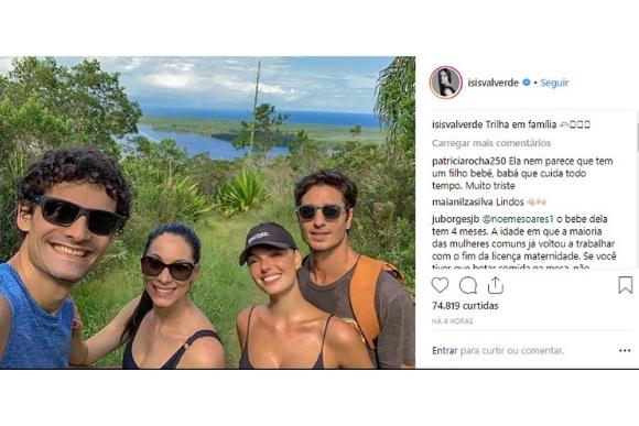 “Ela nem parece que tem filho, é a babá que cuida todo tempo. Muito triste”, disse um internauta no perfil de Isis. “O bebê dela tem 4 meses, idade em que a maioria das mulheres comuns já voltou a trabalhar com o fim da licença maternidade”, defendeu uma seguidora.