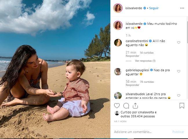 Isis Valverde deixou os seguidores encantados ao postar uma foto com o filho. No sábado, 27 de julho, a atriz posou ao lado de Rael na praia e publicou a foto no Instagram. Na legenda, Isis se declarou para o filho: “Meu mundo todinho em você”.