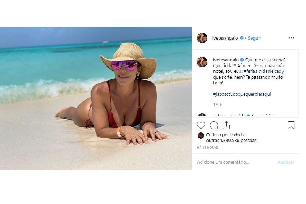 Ivete ainda deu um show de auto-estima. “Quem é essa sereia? Que linda!!! Aí meu Deus, quase não notei, sou eu!!! #ferias  @danielcady que sorte, hein? Tá passando muito bem”, escreveu na legenda .