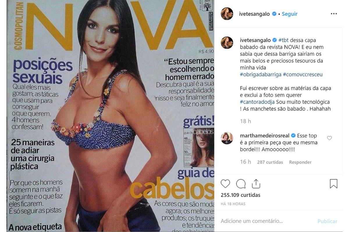 “#TBT dessa capa babado da revista NOVA! E eu nem sabia que dessa barriga sairiam os mais belos e preciosos tesouros da minha vida. #Obrigadabarriga! #Comovocêcresceu! As manchetes são babado!”, escreveu na legenda do post.
