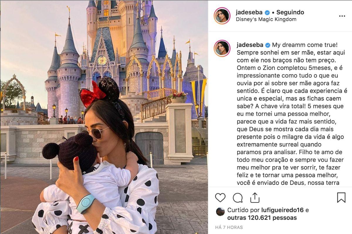 Jade Seba está curtindo muito os parques da Disney em família. E nesta quinta-feira, 24 de outubro, ela fez homenagem ao filho que comemorou o seu 5° mesversário durante a viagem.