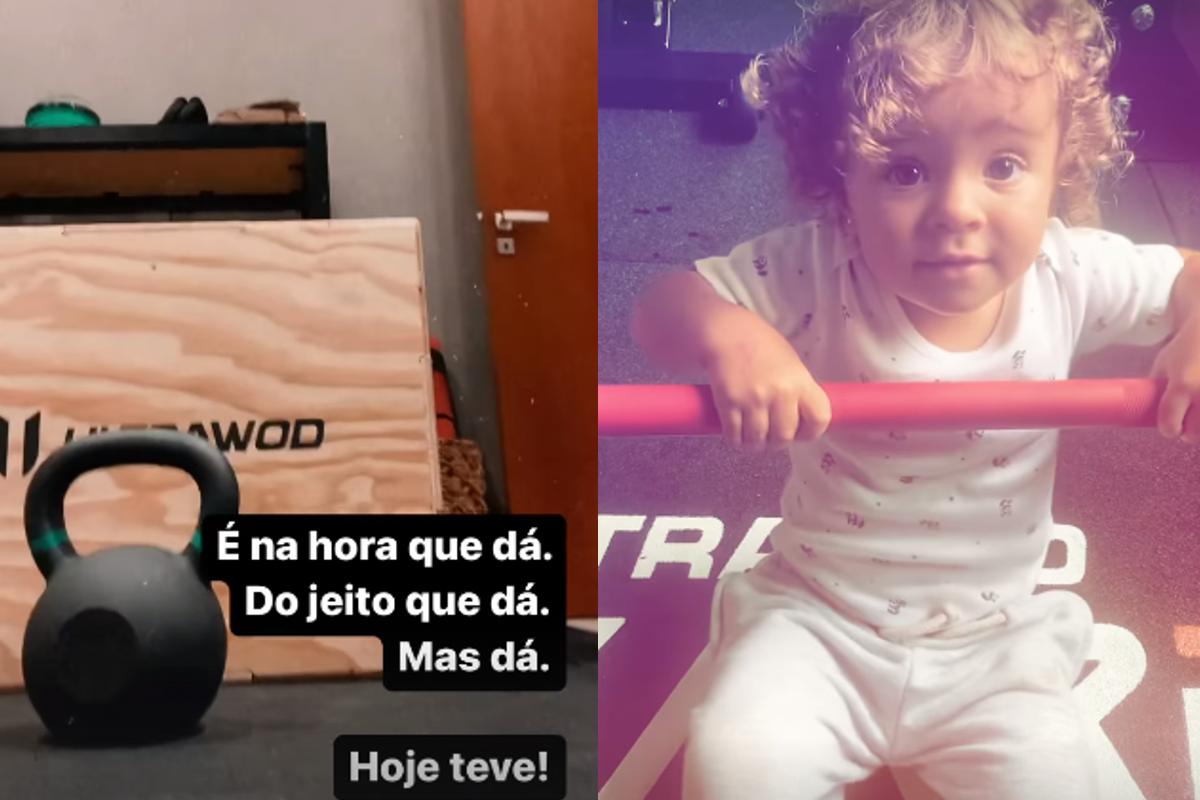 Na sessão de stories da plataforma, o pai apareceu pegando pesado na musculação, brincando que a filha estava o acompanhando. “Cansou?”, questionou ele, recebendo um aceno de ‘sim’ da mais nova.