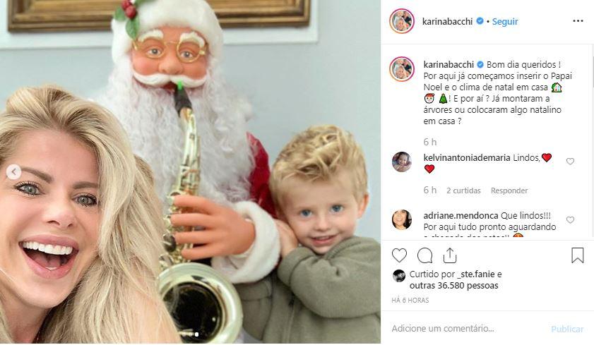 “Por aqui já começamos inserir o Papai Noel e o clima de Natal em casa. E por aí? Já montaram árvores ou colocaram algo natalino em casa?”, disse Karina na legenda da publicação. Na foto, Karina e Enrico estão sorrindo ao lado do Papai Noel.
