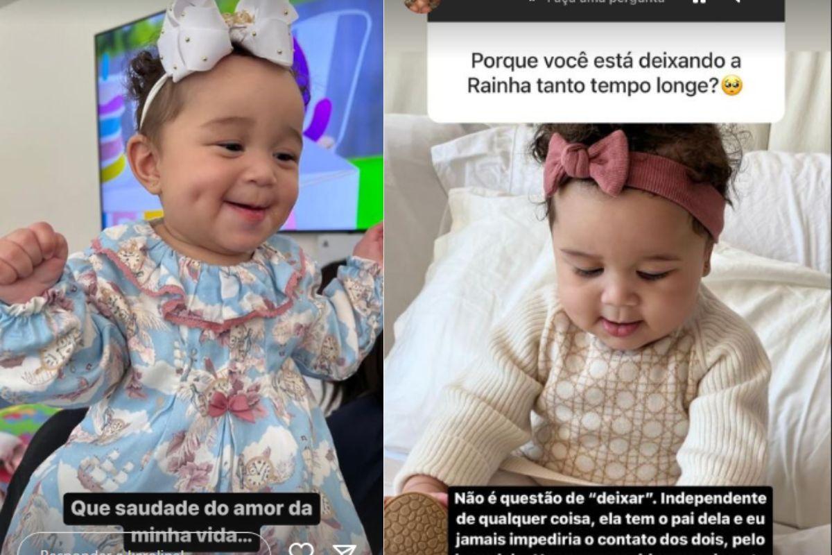 Uma seguidora perguntou para a mãe o porquê ela está deixando a Cecília passar tanto tempo longe dela. No Stories ela compartilhou uma foto da filha e ela respondeu: “Não é questão de “deixar”. Independente de qualquer coisa, ela tem o pai dela e eu jamais impediria o contato dos dois, pelo bem dela. Houve um problema realmente nessa quantidade de dias que não foi o combinado, mas ok. Que tudo se resolva da melhor maneira e que ela sempre tenha contato com a família dela da melhor maneira possível”.