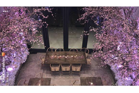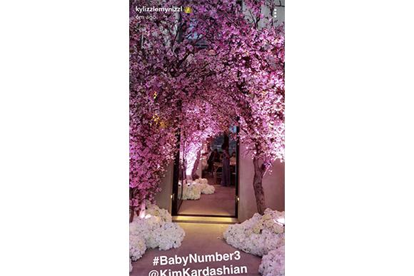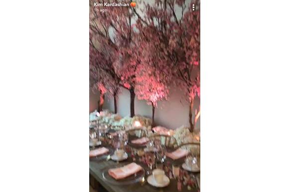A decoração estava um luxo e fofa, ao mesmo tempo. A mansão West em Bel-Air estavam decorada com cerejeiras e flores brancas. E teve até presentes para os convidados! Kim distribuiu as fragrâncias que irá lançar com a KKW Beauty na próxima semana: Crystal Gardenia, Crystal Gardenia e Crystal Gardenia Oud.