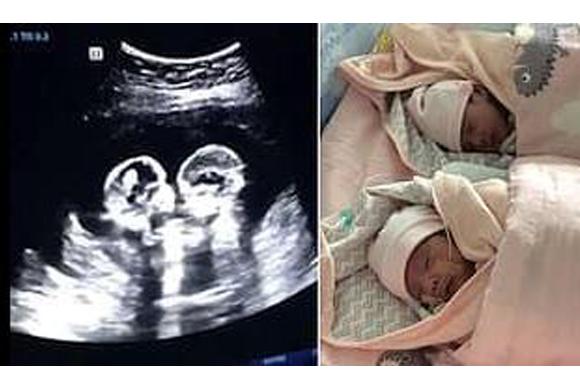 O médico adiantou o parto porque o coração de uma das gêmeas estava ficando cada vez mais fraco. A mãe precisou ser submetida a uma cesárea de emergência. Hoje, um mês depois, elas já estão bem e bem saudáveis. irmãs foram bem sortudas de não terem tido complicações mais graves. A gestação foi monocoriônica e monoamniótica.