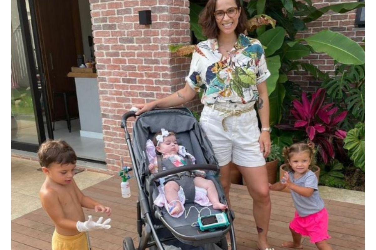 Nessa domingo, dia 26 de fevereiro, Letícia Cazarré tirou o dia para aproveitar e comemorar o primeiro mês da filha mais nova, Maria Guilhermina, de 8 meses, em casa, após sua alta hospitalar. A bebê foi diagnosticada com Anomalia de Ebstein – má formação da válvula tricúspide, ocasionando insuficiência cardíaca congestiva e um back-up do fluxo sanguíneo, resultando em acúmulo de líquido nos pulmões – em seu nascimento e ficou internada até então, onde passou por cirurgias no período em que estava no hospital.