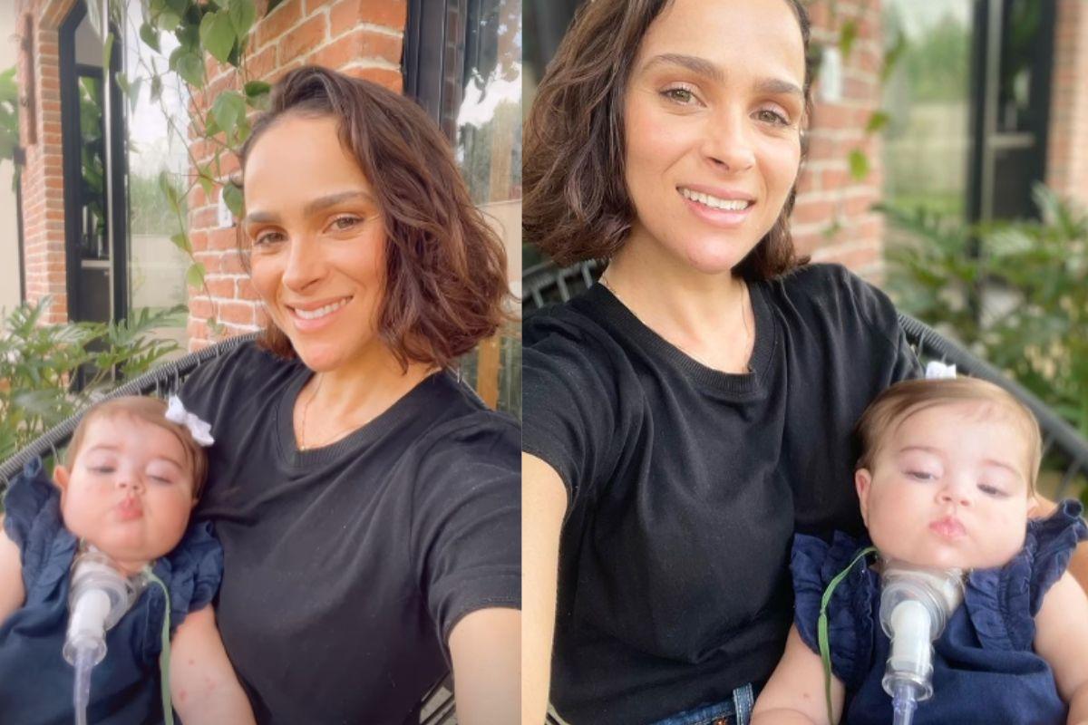Além disso, ela também publicou no Instagram uma foto aproveitando a manhã com a filha no colo. Na foto a bebê aparece usando um aparelho de traqueostomia.