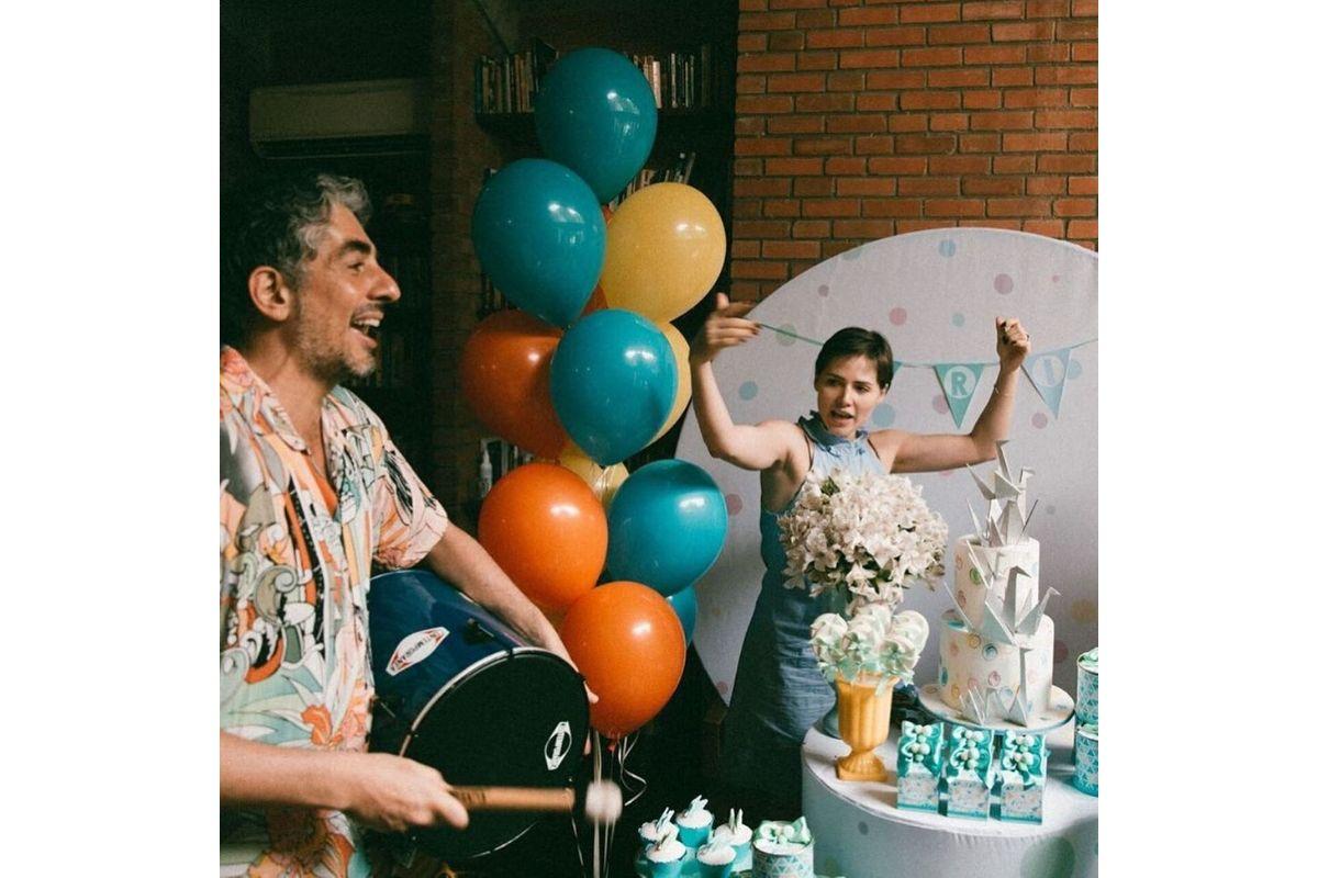 “Tivemos a festa mais linda pro nosso amor…meu escorpiano do dia 14. Te amo meu @michelmelamed. Te amo meu Uri. Você dormindo com o papai tocando TanTan é o tipo do momento que me faz ter mais leite…”, escreveu.