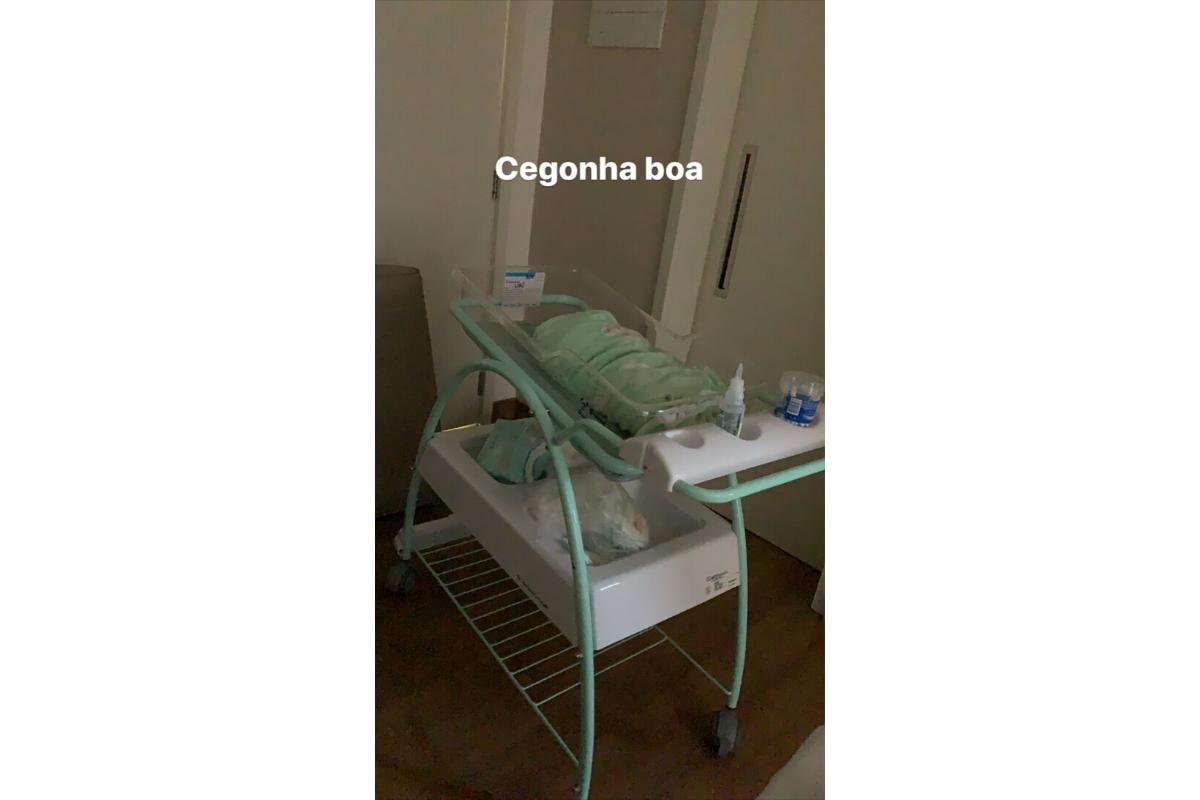 Através de seus stories no Instagram, Letícia mostrou um pouco de como está sendo sua primeira noite na maternidade com o filho nos braços. Em seu primeiro post, ela mostra Uri deitado no berço todo enrolado em um cobertor. Feliz, ela escreveu: “Cegonha boa”.