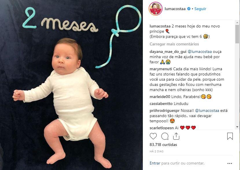 Luma Costa postou uma foto em seu Instagram para comemorar o 2º mês de vida do caçula Eduardo.