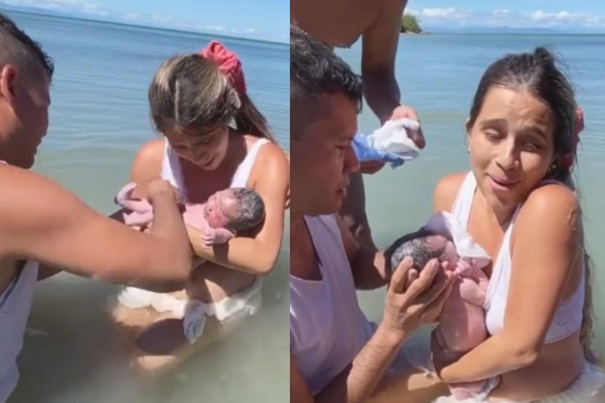 Mulher escolhe realizar parto em praia e gera polêmica: “Um pouquinho errado não?”