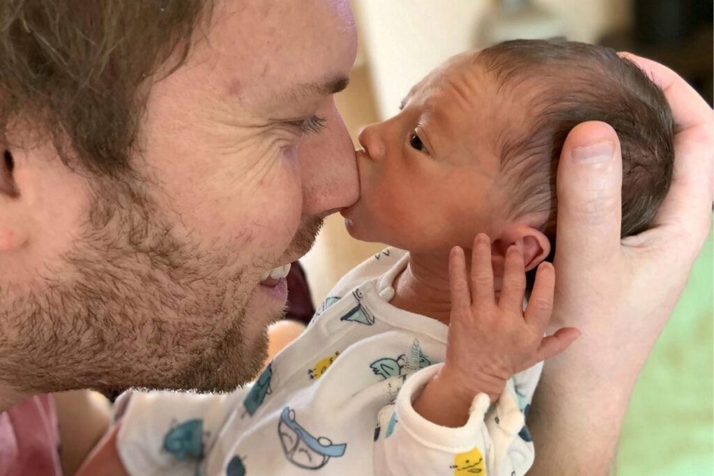 Murray Mitchell com o filho após o nascimento (Foto: Reprodução/ TheSun)