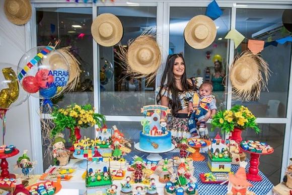 Na terça-feira, dia 11 de junho, o filho do cantor Felipe Araújo, fruto do relacionamento com Caroline Marchezi, completou 4 meses de vida. Para comemorar, a mãe resolveu fazer uma festa daquelas com o tema que tem tudo a ver com a época do ano: festa junina! O garoto, que estava todo a caráter de caipira! A mesa, toda decorada, tinha bandeiras, bichos da fazenda e balões escrito “Arraiá do Miguel“. De cair o queixo!