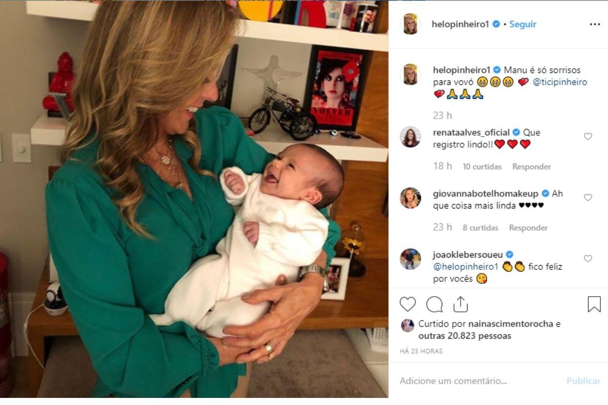 “Manu é só sorrisos para vovó”, escreveu Helô e claro que os seguidores e amigos da família amaram ver o registro e fizeram questão de comentar uma chuva de elogios. “Alegria de quem sabe que tem a melhor genética do Brasil”, brincou uma seguidora. “Que registro lindo!”, escreveu Renata Alves.