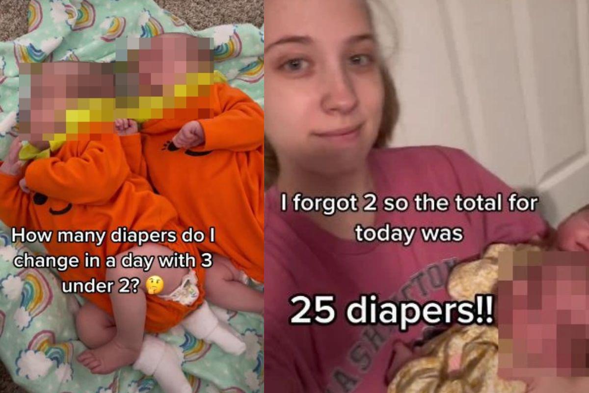 Uma mãe viralizou nas redes sociais ao compartilhar o número de fraldas sujas, que ela troca por dia nos três bebês com menos de 2 anos.  A tik toker Nikki Ruble mostra no perfil dela diariamente o dia a dia como são cuidadas com os bebês dela. Ela surpreendeu os internautas e seguidores ao revelar que passou de uma ou duas para 25 fraldas sujas em um dia.