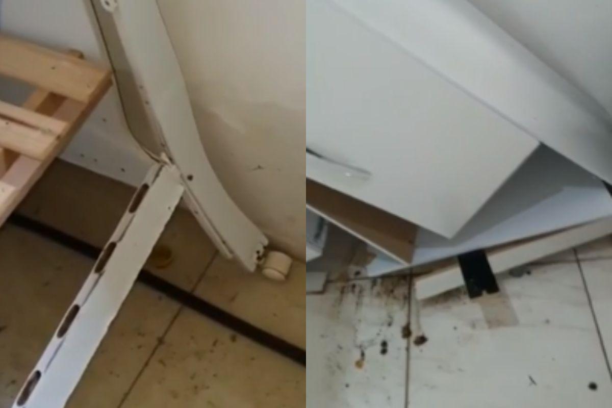 A chuva destruiu todo o enxoval dos trigêmeos (Foto: Reprodução/G1)