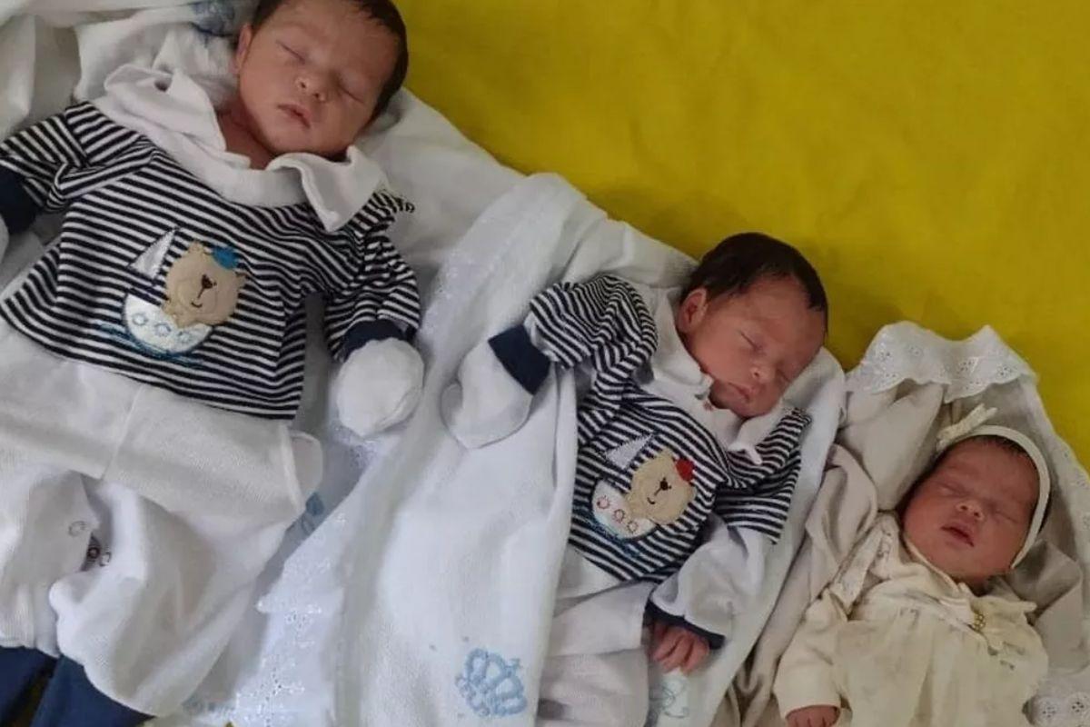 Após 20 dias do nascimento, os trigêmeos perderam todo o enxoval