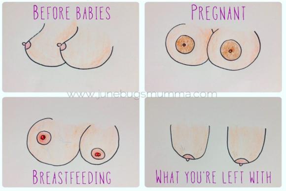 A mãe se permitiu ficar triste, sem se sentir mal por isso até quando ela encontrou na internet, algumas ilustrações que mostram o ‘ciclo de vida dos seios’, feitas por uma artista australiana: Junebugs Mumma Georgie.