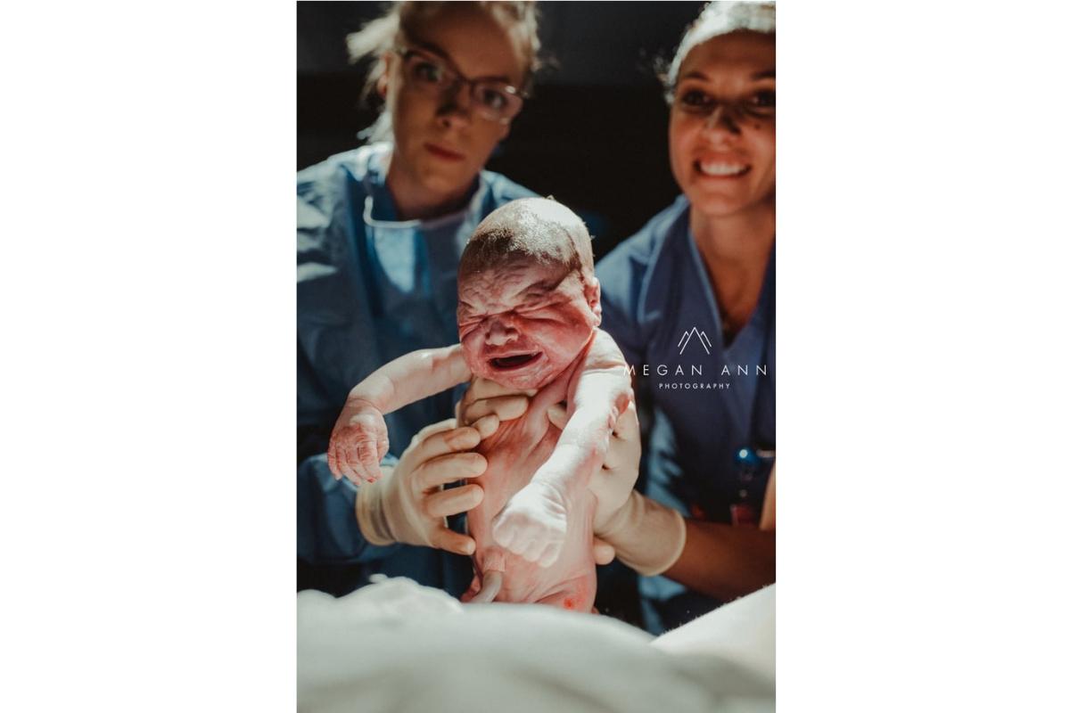Durante a cesariana, o marido de Megan estava com a câmera dela e a entregou quando estava chegando o momento. “Registrei o melhor momento da minha vida. Foi o melhor dia da minha vida e vou sempre me lembrar dele da maneira que eu quis”.