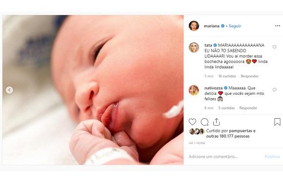 Até as mais famosas das seguidoras de Mariana se derreteram com a menina. “Que linda, socorro!”, escreveu Gabi Brandit. Mariana Saad também comentou. “A titia não vê a hora de ver essa bochecha gostosa! Muitas bênçãos para essa sua família, minha amiga amada”, desejou.