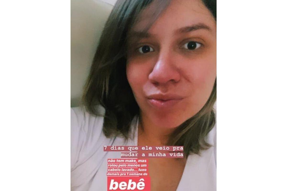 Ao falar sobre maternidade, Marília, de 24 anos, postou uma foto sem maquiagem e comentou sobre a primeira semana de vida do filho: “7 dias que ele veio pra mudar a minha vida. Não tem make, mas rolou pelo menos um cabelo lavado… Luxo demais pra 1 semana de bebê”.