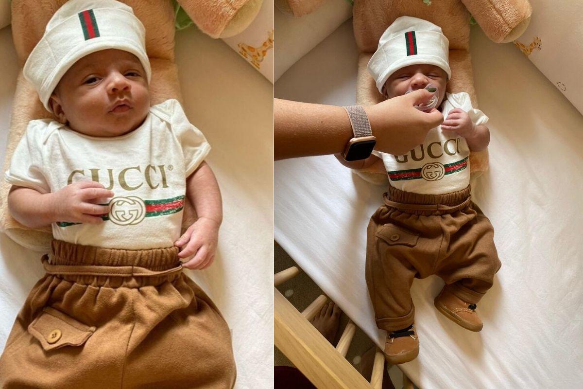 Com uma segunda foto, ela mostrou Leo no mesmo look com uma chupeta e escreveu: “Num devo, num temo, me da minha pepeta e já era #swag”. Pelos comentários, os seguidores e famosos falaram sobre a cena: “MEU DEUSSSS, ELE TODO DE GUCCI KKKK AMO”, escreveu Maísa. “Só essa roupa dele renova meu guarda-roupa para os próximos 2 anos”, brincou outro.