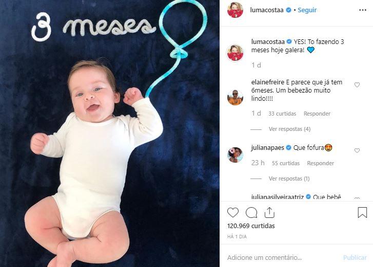 O bolo era lindo! (Foto: Reprodução / Instagram @lumacostaa)No feed do Instagram, Luma publicou uma foto do filho para comemorar os 3 meses.