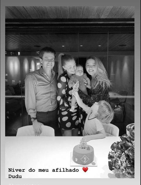 Nas redes sociais, Marina Ruy Barbosa postou uma foto com o afilhado para comemorar. “Niver do meu afilhado Dudu”, disse a atriz em seus stories.
