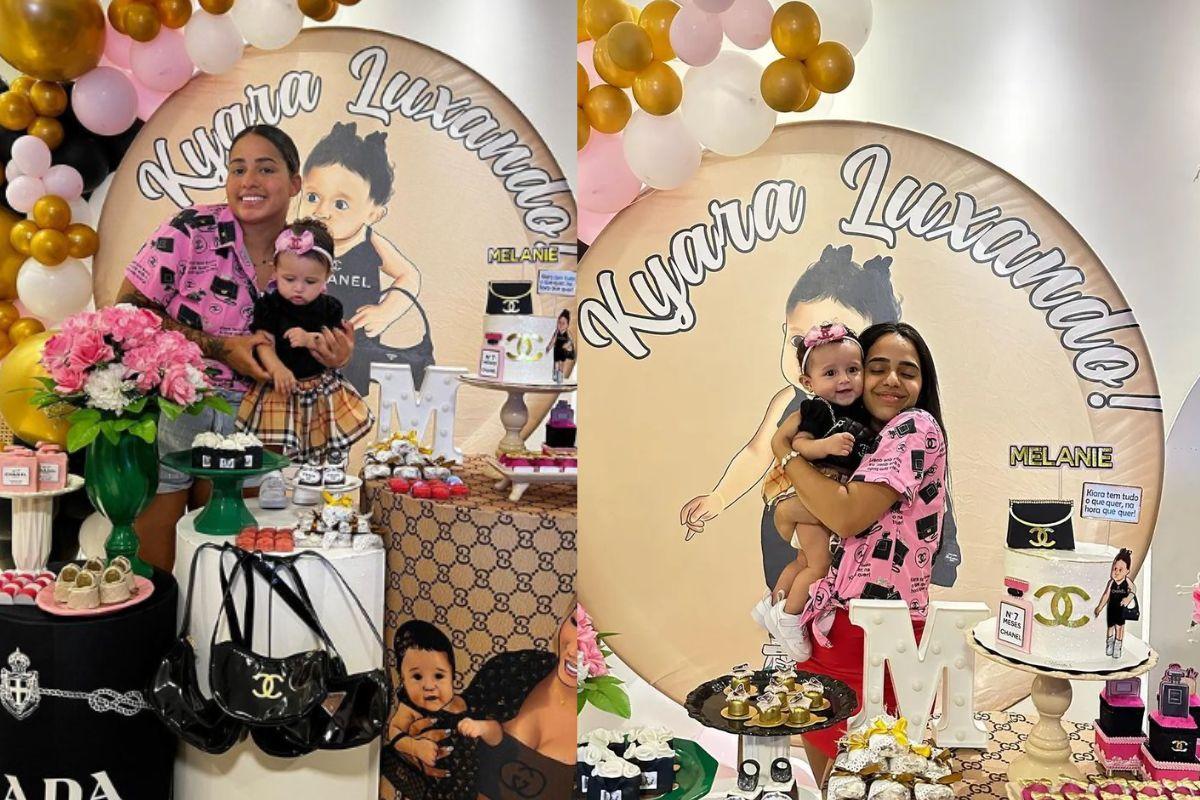 Como na novela Chaira é rica e possui diversos itens de luxo, a festa de Melanie contou com itens de decoração inspirados nas marcas ‘Chanel’, ‘Prada’, e ‘Gucci’.‘’Pra sempre eu e você !’’, declarou a mãe na legenda da publicação.