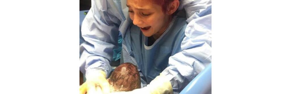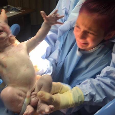 Dede contou que a primogênita estava triste por não participar do momento especial, então a equipe do hospital no Mississippi, Estados Unidos, a convidou para ajudar nos procedimentos. Ela aceitou na hora e foi a responsável por entregar o bebê para a mãe.”Mesmo com dor e contrações, ver as expressões de Jacee foi algo impagável. Me concentrar no rosto dela me ajudou muito”, escreveu Dede no post que já teve mais de 70 mil curtidas e 8 mil compartilhamentos.