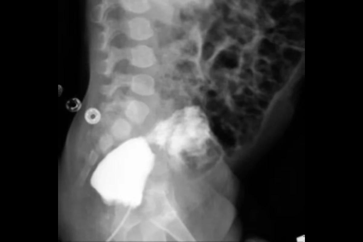 A mãe do menino não relatou problemas durante a gravidez e teve um parto normal. Testes especiais realizados meses depois do nascimento do menino permitiram aos médicos descobrir como o sistema urinário funcionava: havia uma fístula e uma conexão anormal entre a bexiga e o reto.
