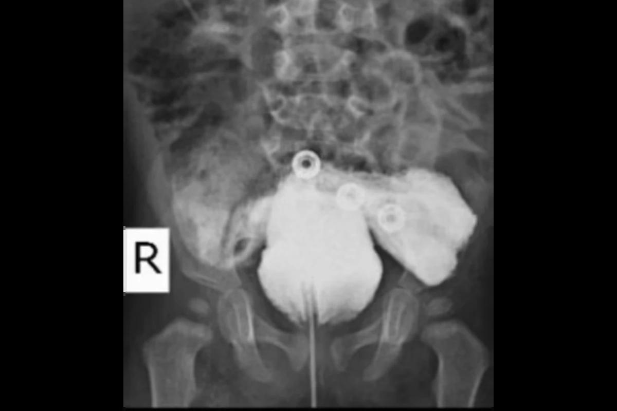 O menino, que tinha 14 meses quando seu caso foi publicado em um jornal, ainda tinha um escroto intacto e dois testículos. Mas devido à malformação, ele precisava urinar por meio do ânus.