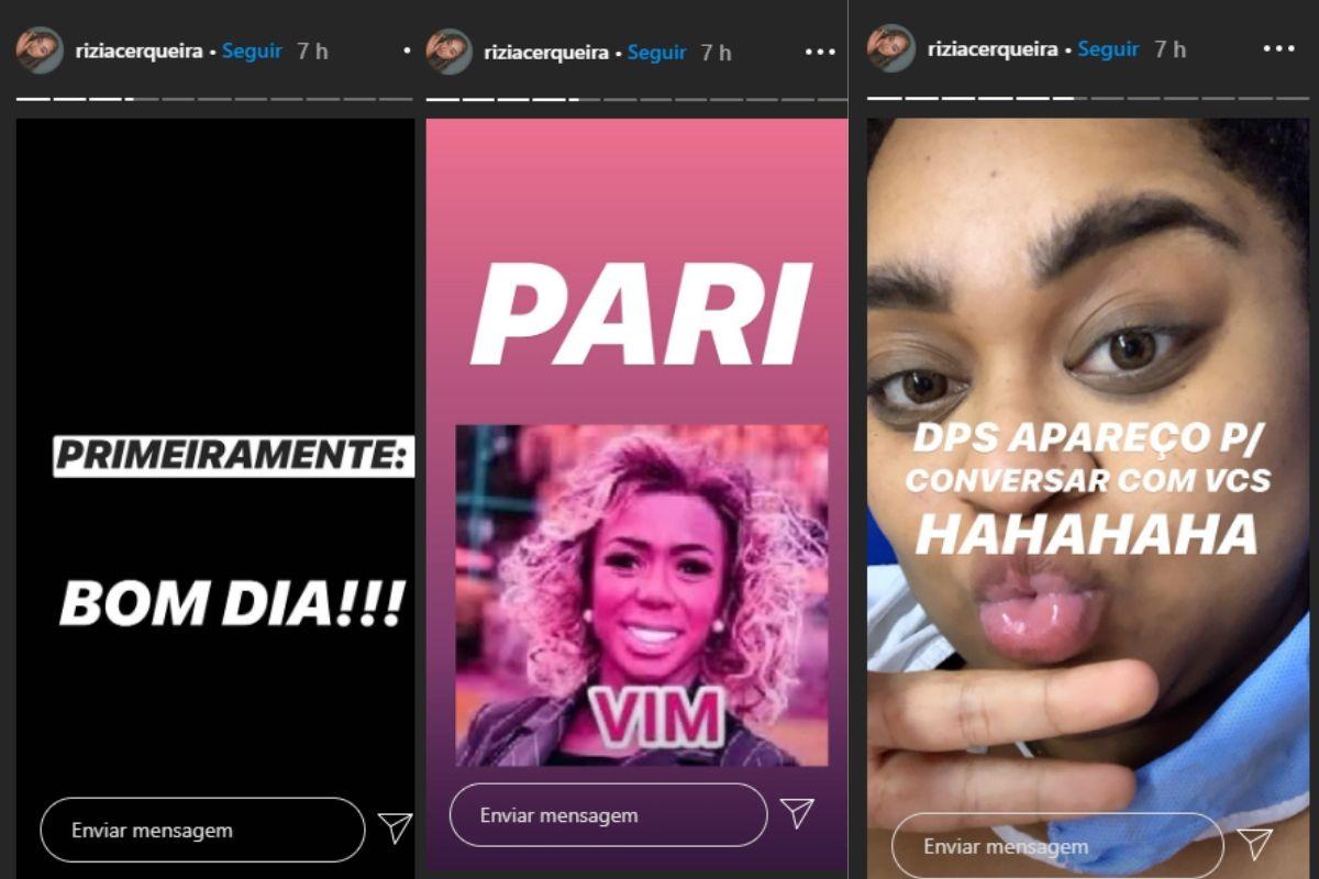 Nasceu o primeiro filho da ex-BBB e jornalista Rízia Cerqueira com o marido, o empresário Nathanaël Avëlino. Nas redes sociais, a famosa anunciou o nascimento do filho Yaweh de uma maneira bem-humorada, usando um meme! “Primeiramente: bom dia! Pari! Depois apareço para conversar com você! Hahaha!”, escreveu nos stories do Instagram.