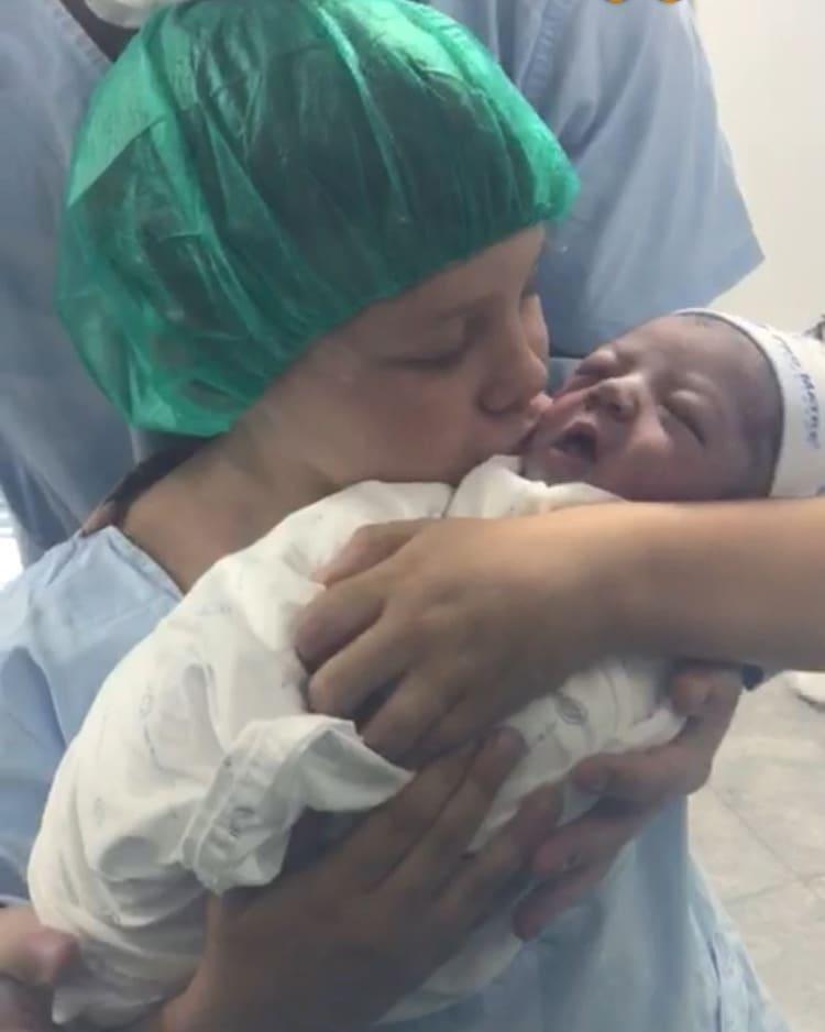 Em um vídeo e foto divulgados nas redes sociais, Davi Lucca aparece com o irmãozinho nos braços, acompanhado de Vini Martinez: