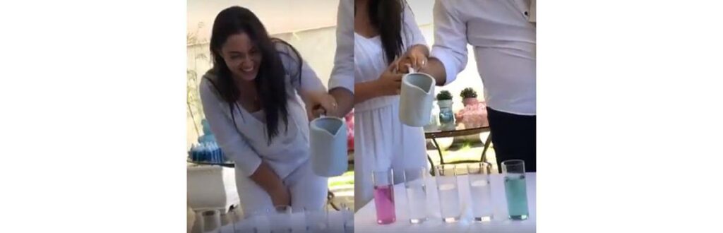 O casal do vídeo decidiu colocar 5 copos e apenas o que fica no meio revelava o sexo da criança. A publicação foi feita na página do Facebook Mamãe de Negócios já tem mais de 8 milhões de visualizações, 15 mil curtidas e 8 mil compartilhamentos. Vem ver: