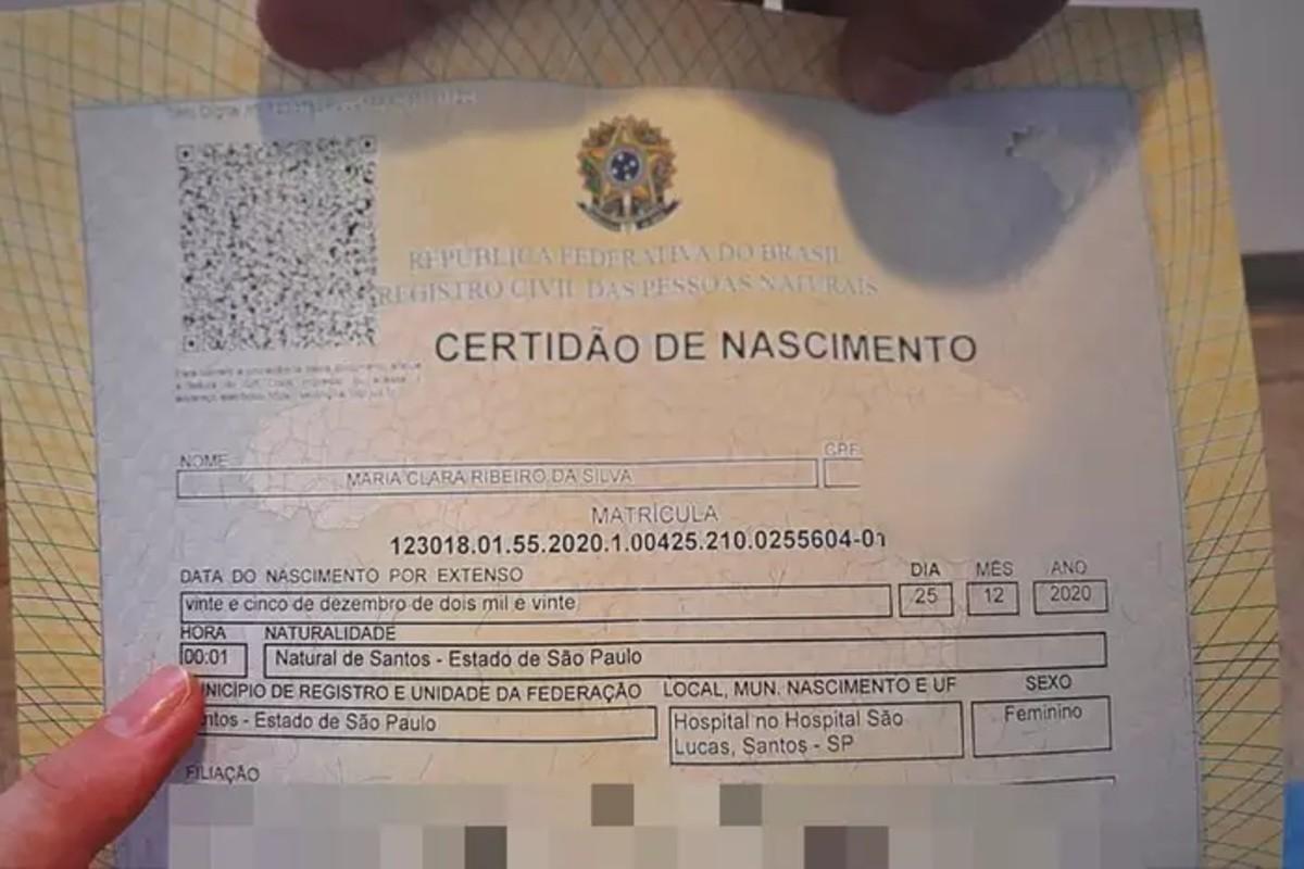 Como os pais precisavam da certidão de nascimento para realizar procedimentos necessários, como o exame do pezinho (que é feito em até uma semana) e vacinas, alteraram o horário de nascimento da filha para 00h01.