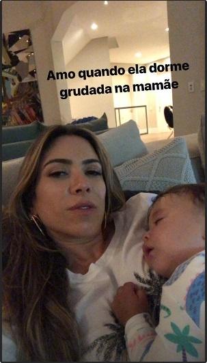 Na foto seguinte, Patrícia disse o quanto se sentia feliz por Jane ter pegado no sono em seu colo: “Amo quando ela dorme grudada na mamãe”, contou a apresentadora.