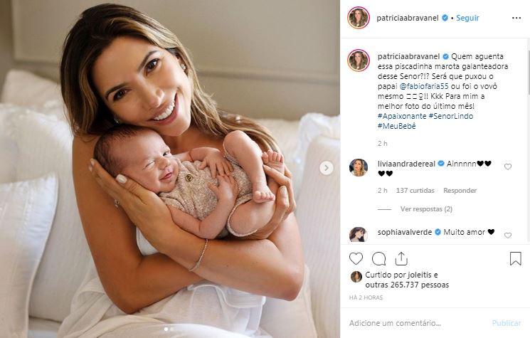 “Quem aguenta essa piscadinha marota galanteadora desse Senor?”, disse Patrícia na legenda da publicação. “Será que puxou o pai ou o avô? Para mim, a melhor foto do último mês!”.